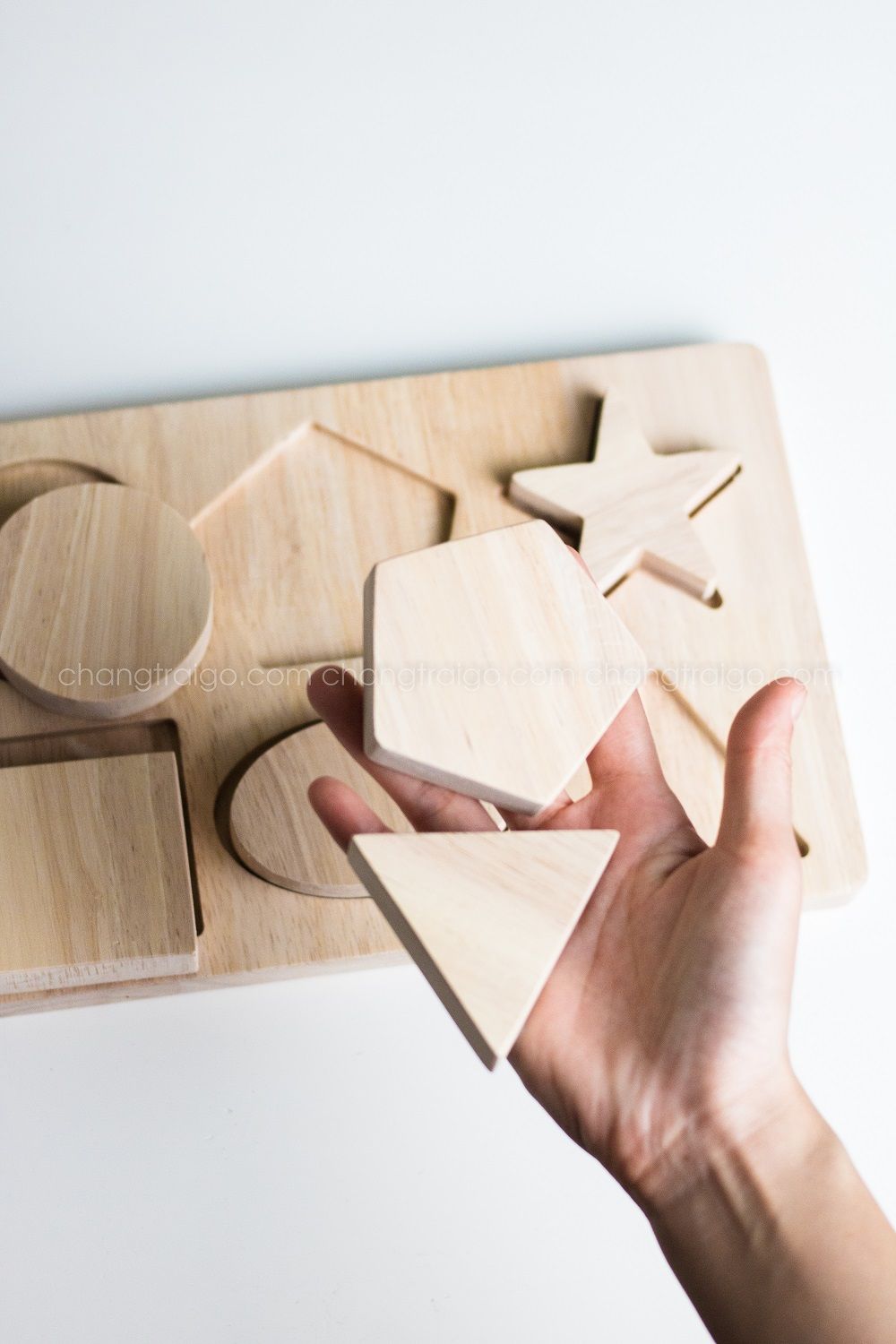 - Bé sẽ thích khám phá làm thế nào để sắp xếp 6 hình dạng khác nhau lắp vào các lỗ thích hợp.