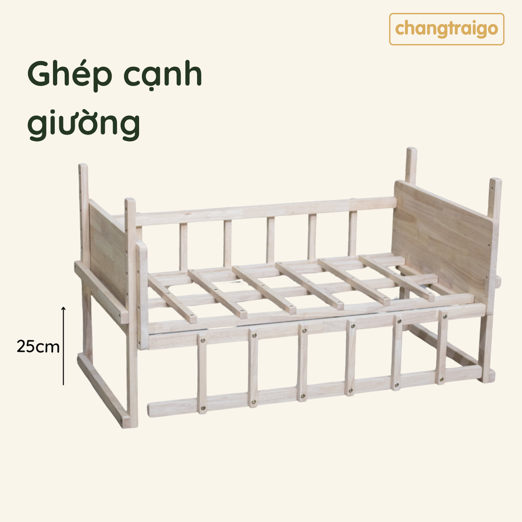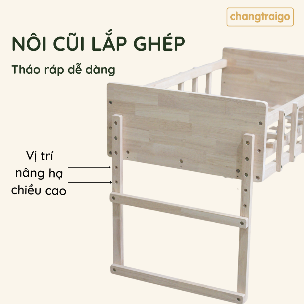 Nôi cũi cho bé sơ sinh, ghép cạnh giường, nôi gỗ tháo ráp tự nhiên Chàng Trai Gỗ