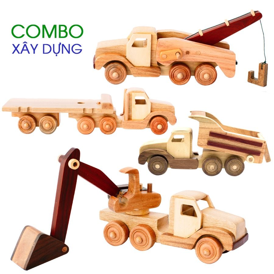 Combo 4 Xe Công Trình - Đồ Chơi Gỗ Trẻ Em Chàng Trai Gỗ